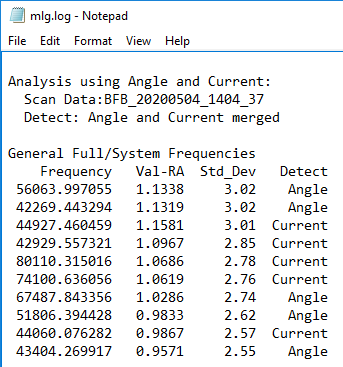 When you click the Show Log button, the Notepad window that appears first has the analysis for Angle, then the analysis for Current, then the merged Angle and Current results (for GeneratorX).