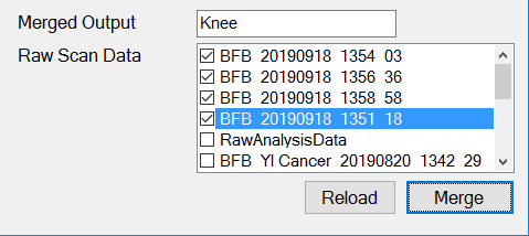 Merged Output it the base name of the raw scan data file you are to create. If you use Knee as the base name, the resulting raw scan file will be named BFB_Knee_20190919_1342_22.