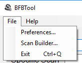 To bring up the ScanBuilder dialog, in BFBTool click the Scan Builder… menu item in the File menu.