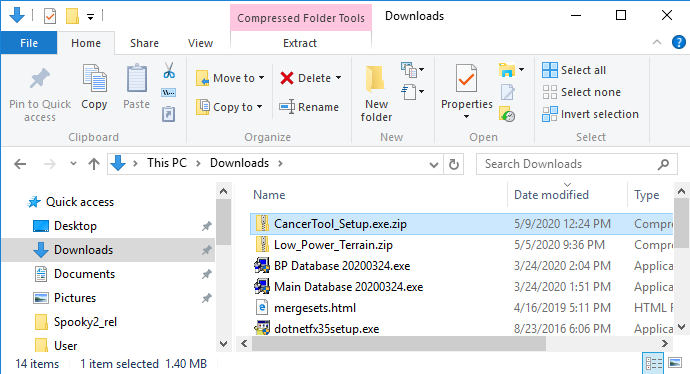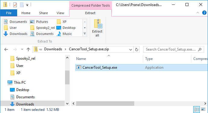and double-click CancerTool_Setup.exe.zip. This will open up the contents of the CancerTool zip archive. Then double-click CancerTool_Setup.exe, which starts the installer.