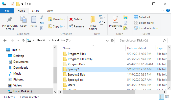 Before you install ChainEditor, you must have .NET Framework 3.5 installed. The installer for ChainEditor is provided by the Spooky2 installer, and is found in the C:\Spooky2 folder. using the Windows File Explorer, go to your the C:\Spooky2 folder by finding This PC in the left column of the Windows File Explorer, then scrolling down the left column until you find the C: drive, which by default is labeled Local Disk (C:). Your hard drive may be named something else besides Local Disk if you or someone else changed the name of the hard drive. Click Local Disk (C:) on the left column, and scroll down the right column until you find the Spooky2 folder.