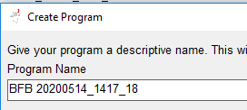 Click the Save button (floppy disk icon circled in red above) in the upper right part of the window to save your scan results into the Biofeedback database (BFB_Frequencies.csv). This brings up a Create Program window. You need not fill in any field, but you may wish to add more comments into the Program Description section.