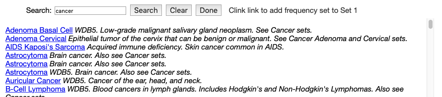 - Click the Auricular Cancer link. Some values will be appended to the existing values in the Set 1 text field.