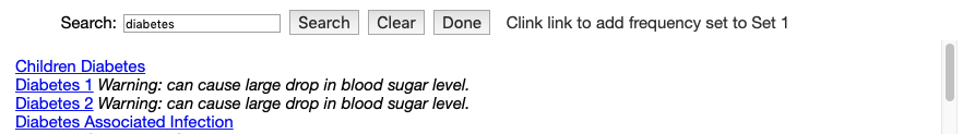 - Click the Diabetes Associated Infection link. Some values will be appended to the existing values in the Set 2 text field.